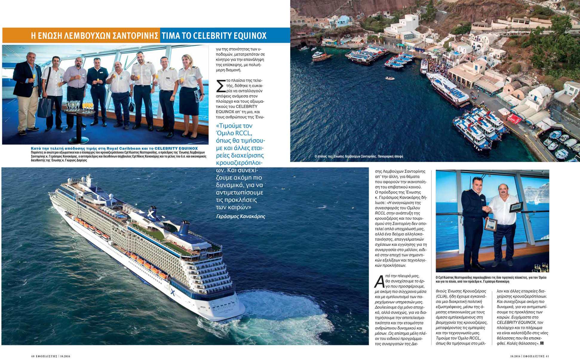 Με την ιδιότητα του Χρυσού Μέλους της CLIA θα συμμετέχει επίσημα η Ένωση Λεμβουχων Σαντορίνης σε όλες τις θεματικές συναντήσεις εργασίας με τα κορυφαία στελέχη των εταιρειών κρουαζιέρας στην Ευρώπη και τις ΗΠΑ.