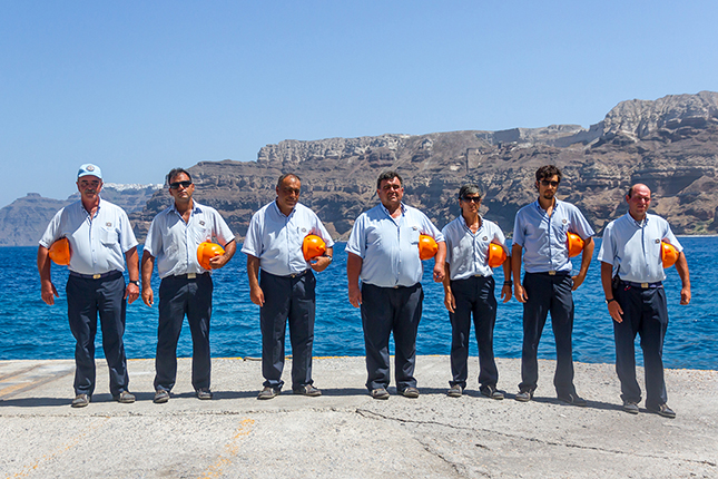 Another service but not of less importance, that the Union offers since 1945 is the mooring of the ships, vessels, ferries or yachts in the area of the new port, Athinios and as well at the old port, where we provide two kind of birthing: at the dock and off shore at the buoys. It represents for us an important sector of our job, because it is not just a service for the shipping companies, it is a fundamental service for the islanders that live on the island all the yearlong, if the cruise ships period is limited to 8 months, this is not true for the mooring, we berth vessels 12 months per year, 365 days on 365, 7 days a week, 24 hours a day, we are proud to offer a qualitative service that through the years has changed a lot, because of the continuous evolution of the ships that are growing and becoming faster.
