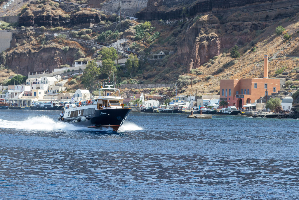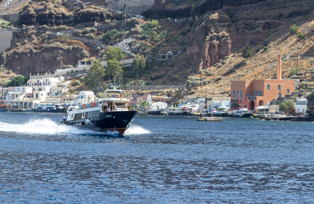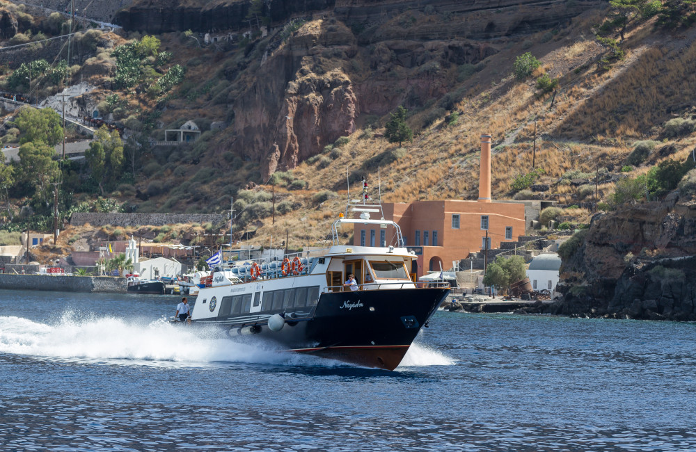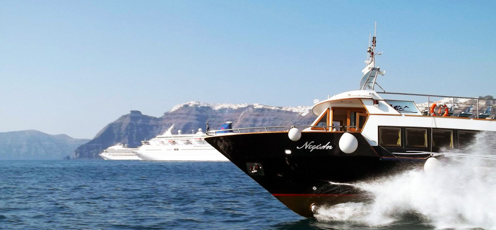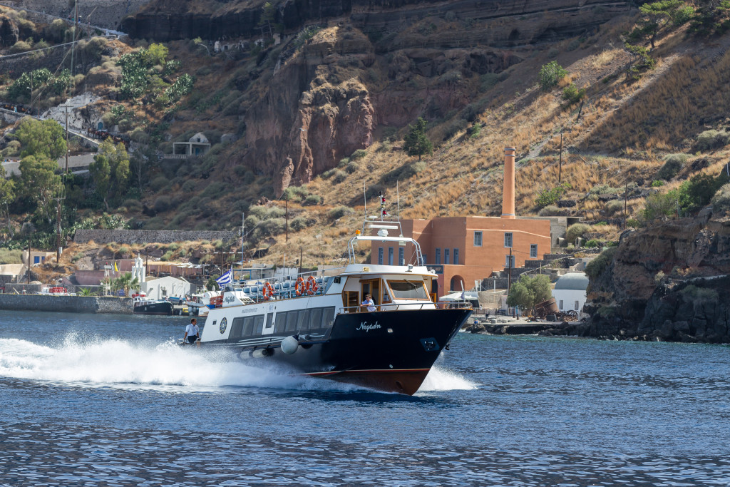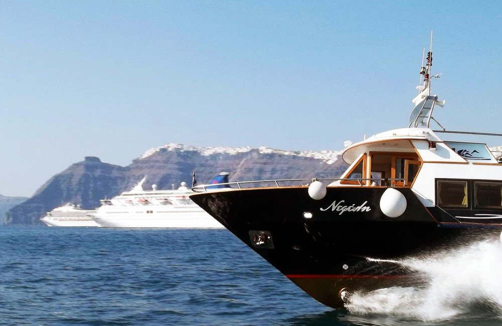 The name come the Greek word nephos that means “cloud”, in the Greek mythology, Nephele was a cloud nymph who figured prominently in the story of Phrixus and Helle. Greek myth also has it that Nephele is the cloud whom Zeus created in the image of Hera to trick Ixion to test his integrity after displaying his lust for Hera during a feast as a guest of Zeus. The vessel has been built in 2008 by the Epsilon Marine, who had the shipyard in Chalcidice, it has been provided of all the most synchronous technologies and of two engines that supplies 800hp each one. Its lounge has been completely restored in our own shipyard in Vlychada, Santorini, on 2010, providing the vessel of a comfortable air-conditioned lounge with leather and wooden sofas extremely refined and cozy. It was the fastest vessel of the fleet with a maximum speed of 29 knots per hour.