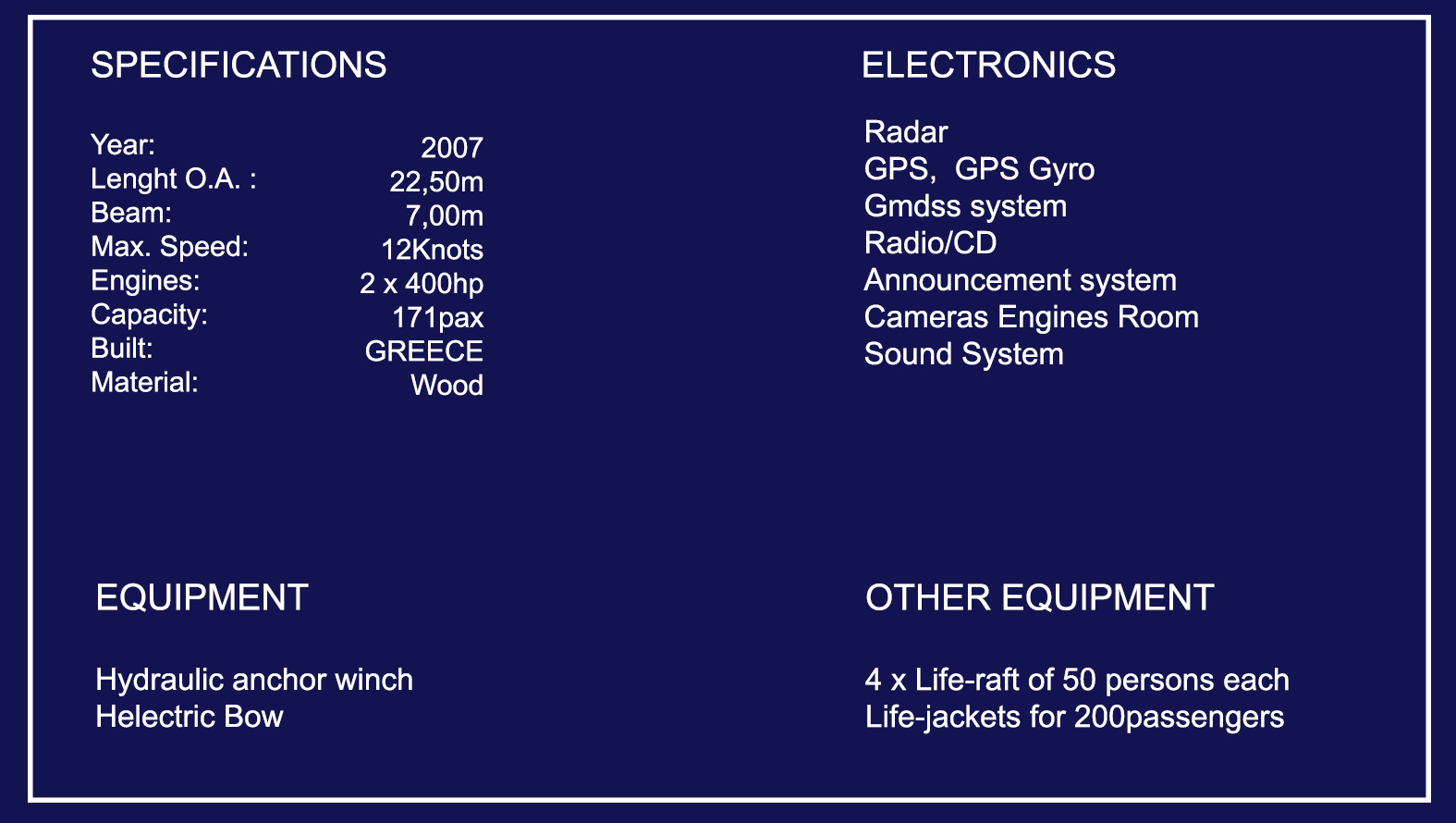 The Princess is the last one of the traditional boat that Union bought, it was the 2007 when one of our Captains, built this boat in a Greek shipyard, completely made in strong wood, the name is dedicated to Santorini and its caldera, as the Princess of the Aegean. The vessel is absolutely amazing to cruise the caldera, high tons weight permit the boat to cruise also in bad sea conditions without shaking a lot the boat and its passengers.