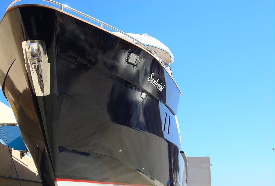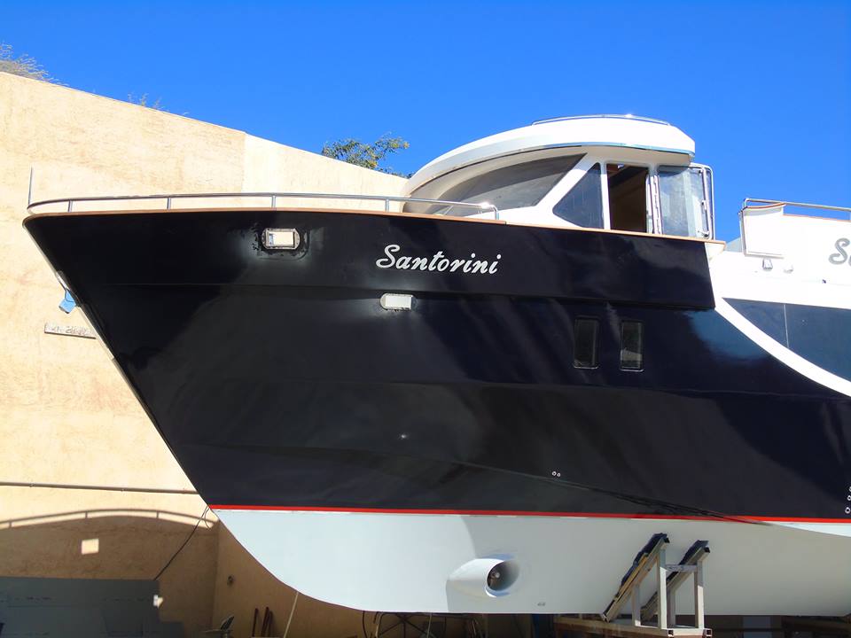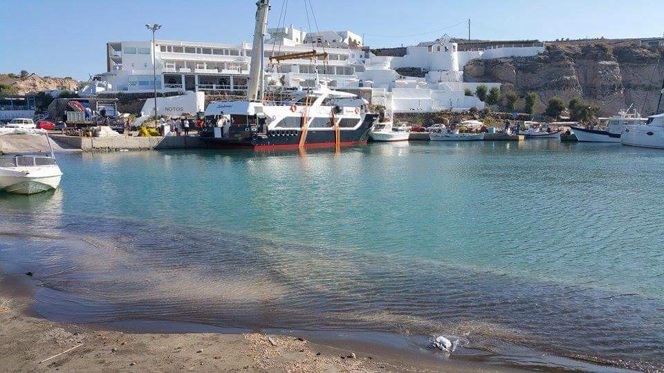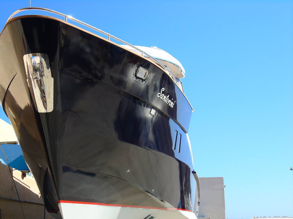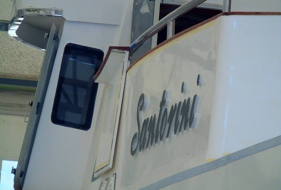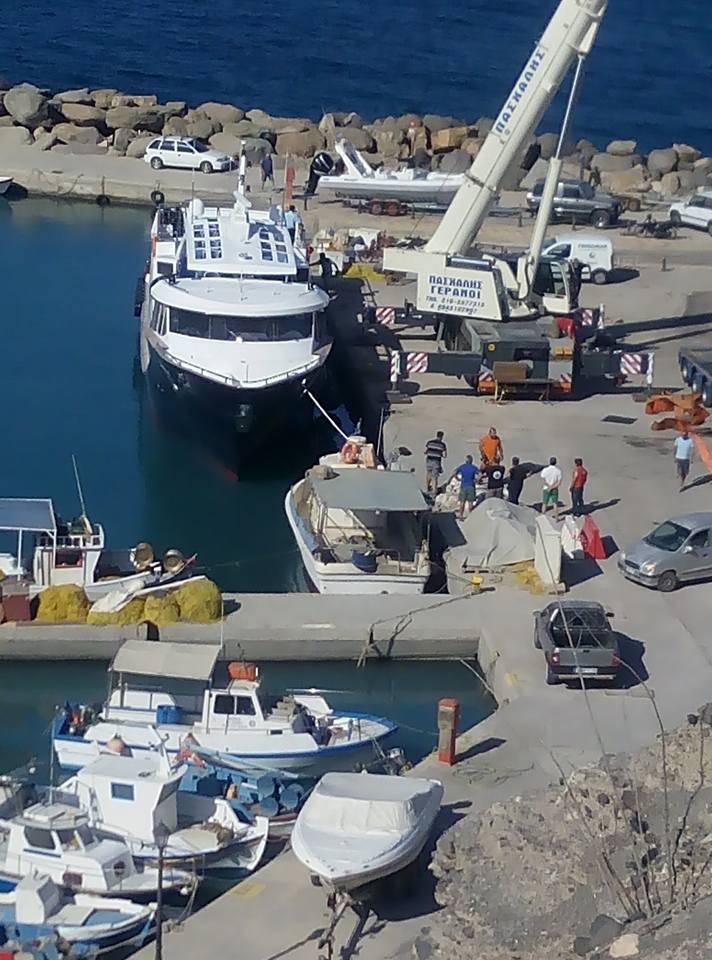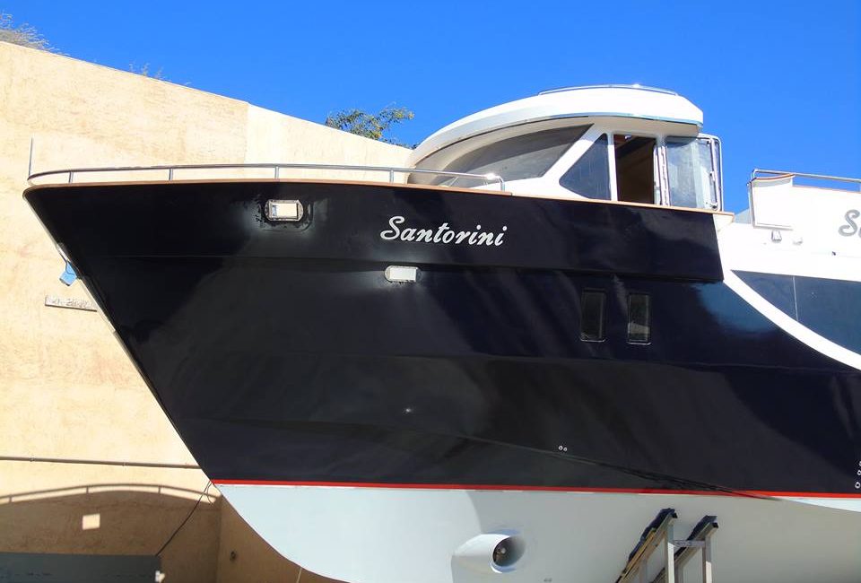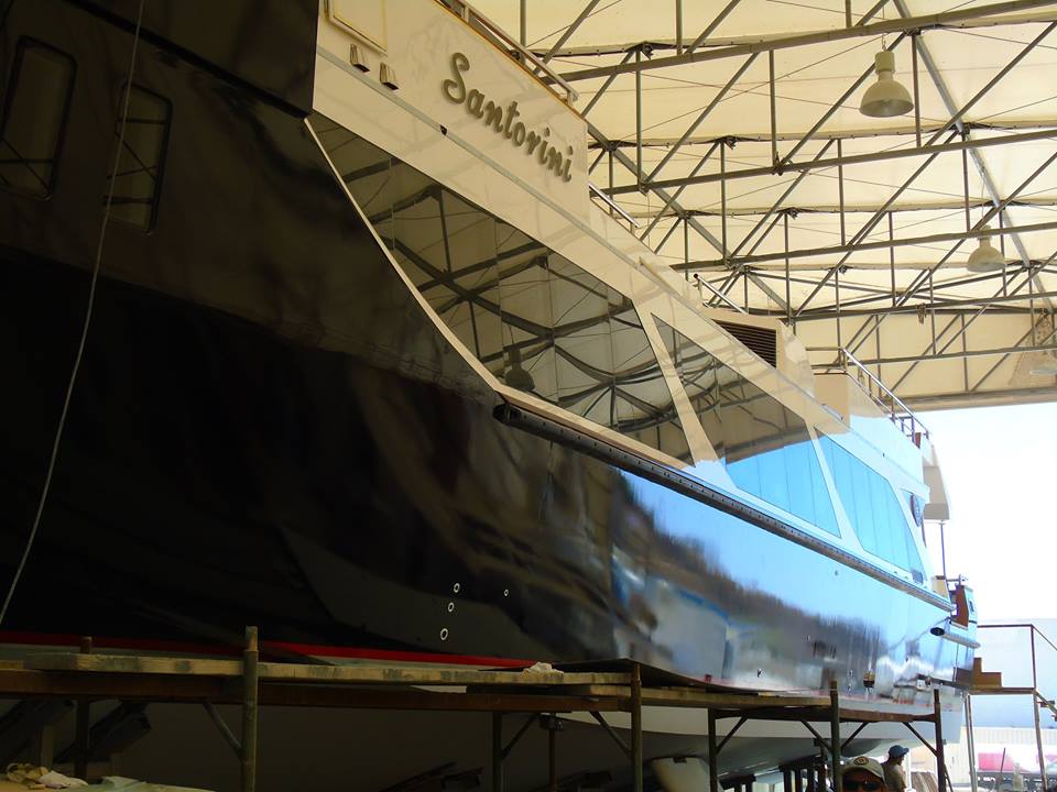 Santorini is the second luxury passenger vessel completely made in Santorini in our own shipyard SantoMarine. The boat will be launched on June 2015 and it will be dedicated to our island Santorini. This vessel will be the flagship of our large fleet made of 18 passenger vessels, the most developed motorboat, that will set a new level standard about comfort, cruise speeds, safety and quality of the service. It accommodates 200 passengers divided between the two decks and an air-conditioned indoor lounge fully equipped with bar, toilets and well refined marine sofas. . The vessel is designed to have excellent sea-keeping characteristics in the Aegean Sea conditions due to the form of the hull and  its special stabilizer system. It will be used especially for the vessel chartering and the organized daily tours to the islands around Santorini.